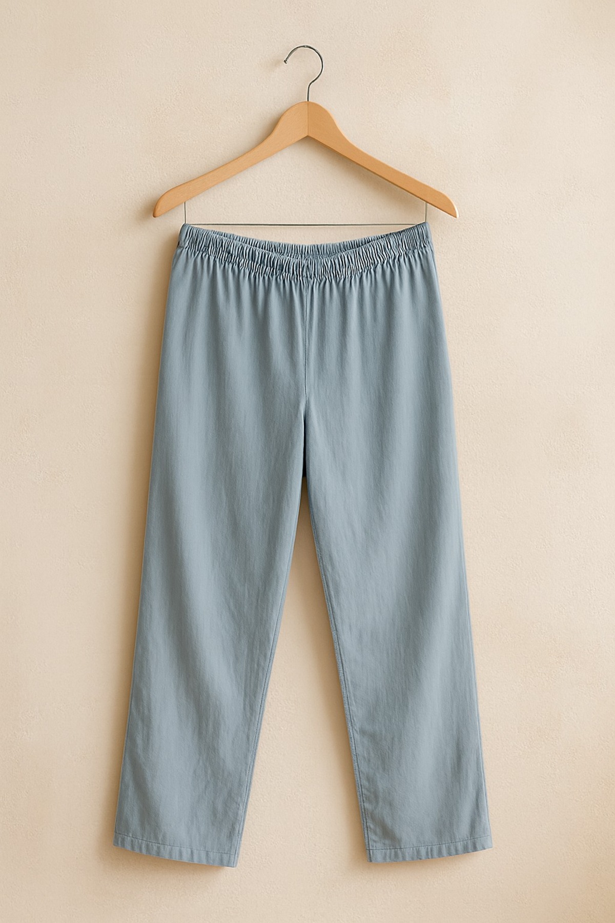 Parlak saten dokusu ve dökümlü formuyla zarif bir görünüm sunan bu pantolon, evde, tatilde veya günlük rahat kombinlerde mükemmel uyum sağlar.; Esnek lastikli beli sayesinde konforlu bir kullanım sunar, düz paça kesimiyle klasik bir duruş yakalar.; Hafif ve yumuşak dokusu sayesinde dört mevsim tercih edilebilir.;